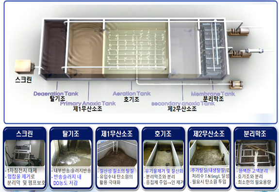 탈기조/제1무산소조/호기조/제2무산소조/분리막조 구성