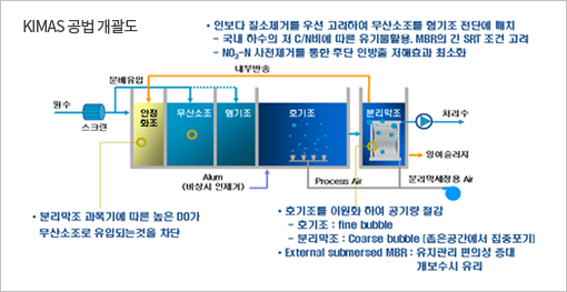 · 분리막 세정용 공기와 생물반응용 Process Air를 이원화로 공기량 절감